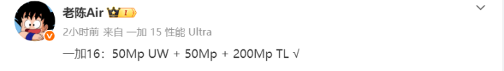 此外,数码博主“老陈Air”日前也爆料称,“一加16:50Mp UW + 50Mp + 200Mp TL √ ”。此前该博主曾爆料称,“一加下一代数字旗舰「一加16」回到了一加老用户所雄厚的“ 万能旗舰 ”花样,居品力在5K - 6K价位段竞争力大幅度加强。性能体验依然是最优先级,但更水桶了。”
