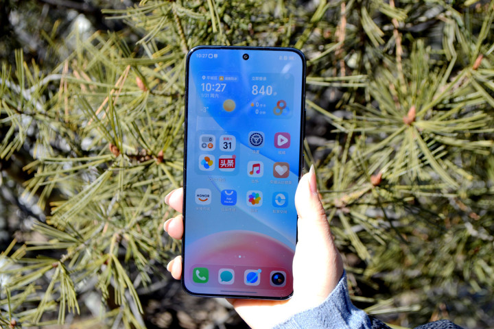 值得一提的是正面的这块屏幕,屏幕的黑边只是惟有1.05mm,这样看,确乎Power2系列是按着旗舰机的尺度来作念的,屏幕是一块6.79英寸的120Hz高刷大直屏,还有3840Hz超高频PWM调光+荣耀绿洲护眼工夫,在暗光环境下简直没频闪,另外,荣耀的护眼就不必多讲了,在这几年一直是作念得最佳的手机品牌。屏幕的峰值亮度可以最高引发8000nits,大太阳地下,也可以很露馅的看露馅屏幕的内容,等于自傲每天在户外使用手机的需求联想的,简直是给外卖小哥定制的一块屏幕。