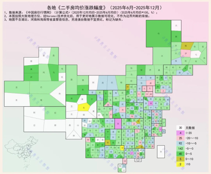 字据可视化图表所展示的数据,从2025年6月到12月这半年间,寰宇多地二手房价钱资历了幅度不一的波动。