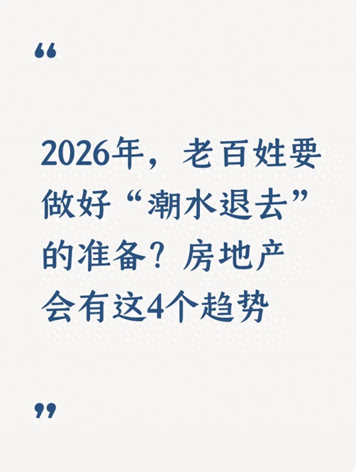 二手房挂半年无东说念主问津,降价也难成交?刚需买房纠结选商品房如故保险房,怕踩坑又怕错过期机?手持多套房,记念持房资本攀升,想动手又怕亏蚀?信服不少东说念主都有这么的楼市困扰,“屋子永远涨”的时间早已驱散,2026年房地产商场的“潮流”接续退去,投契泡沫迟缓隐匿,商场迈入着实的深度迂回期。对老匹夫来说,无需忌惮,但必须看清趋势、作念好准备。今天就用大口语拆解2026年房地产的4个中枢趋势,全是贴合执行的干货,帮大家守住钞票、躲闪楼市陷坑。