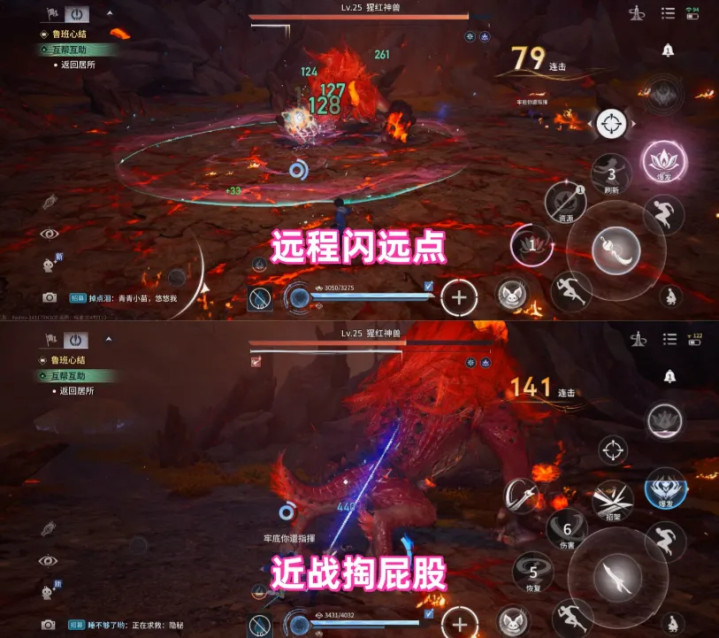1、BOSS嘴巴吸入火元素是要喷火了,得向左侧或右侧藏匿。