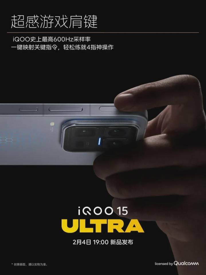 关于 FPS 玩家,触控屏恒久是短板。iQOO 15 Ultra 获胜回来了超感游戏肩键,600Hz 采样率,复古无感映射开火、手段等操作。