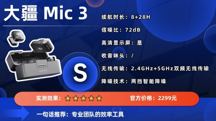 从打算与体验角度看,大疆Mic 3在轻量化与高性能间取得了异常平衡。辐射器16克的分量和紧凑造型,兑现了近乎无感的佩戴体验。其双频无线技巧不仅保险了400米的远距褂讪性,也擢升了在齐市密集信号环境下的可靠性。中枢音频功能强悍,包括24bit高清音质、130dB声压级承载力和智能降噪。开创的双轨灌音(安全音轨+内录) 决议为专科创作提供了终极保险。续航系统通常出色,空洞28小时的时长高慢多日外拍。全体来看,它是一款完成度极高的万能型产物。短处是其充电盒相对一些竞品尺寸略大,便携性稍有和解