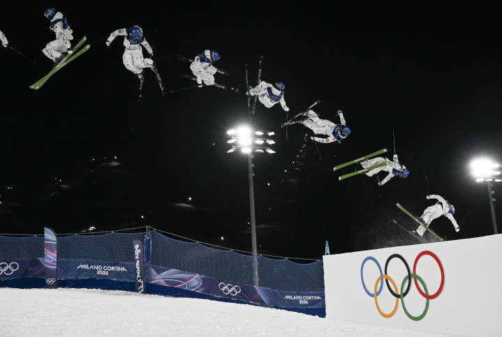 2月14日,比赛下注app中国选手谷爱凌在解放式滑雪女子大跳台经验赛中(多重曝光像片)。新华社记者夏一方摄