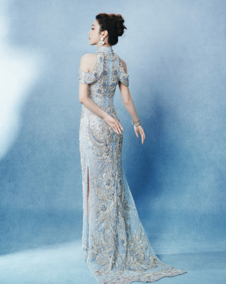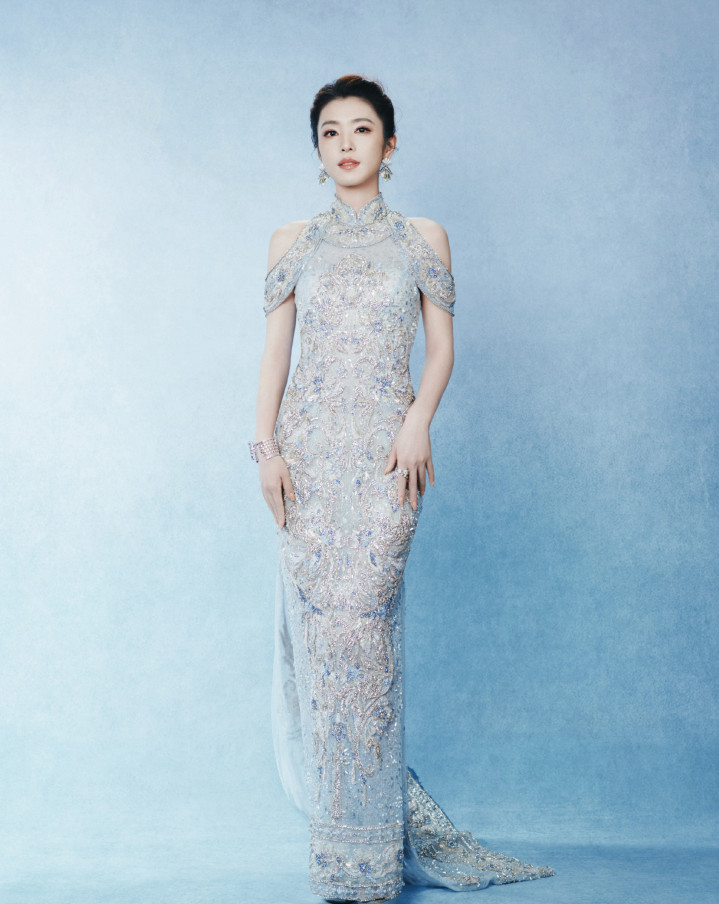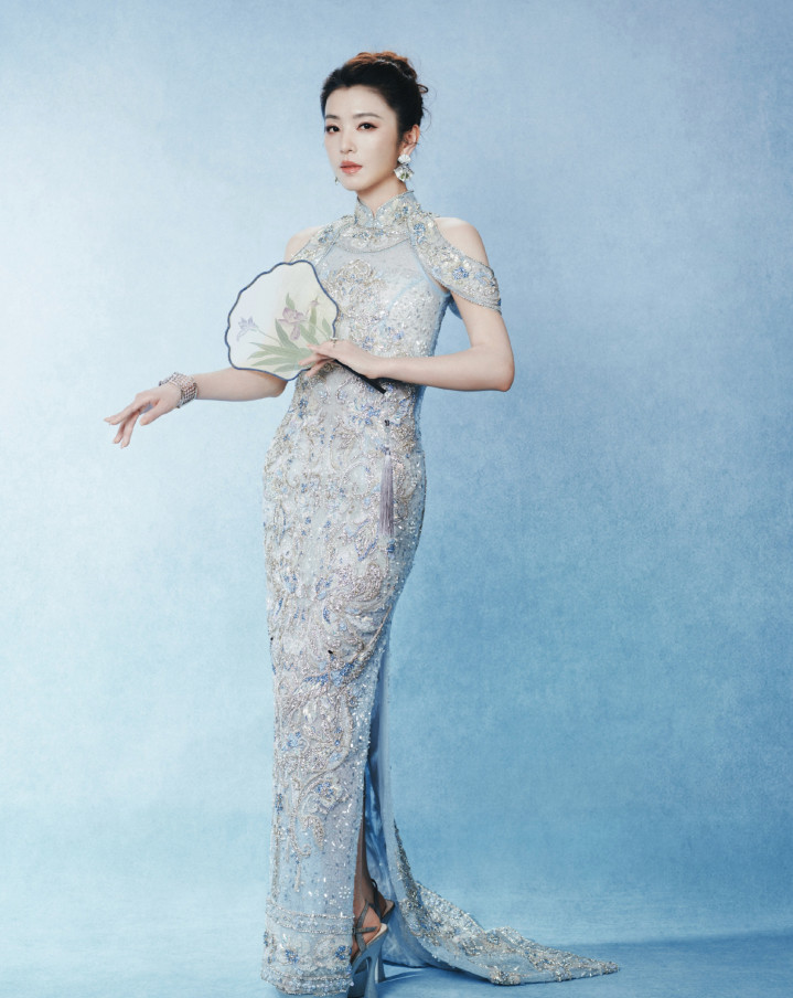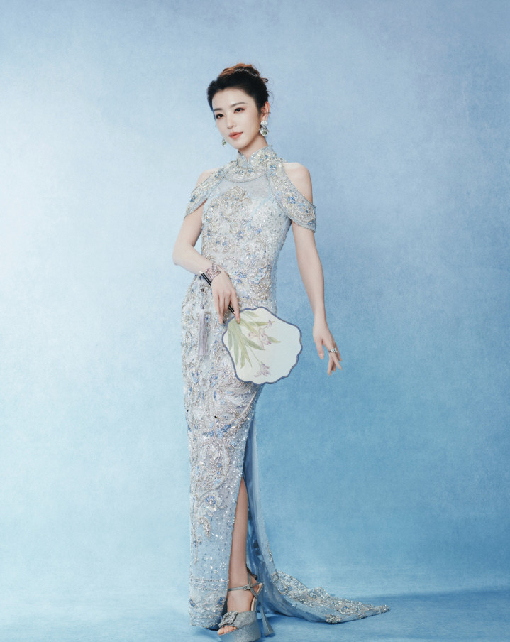 李云端冰蓝绣锦造型,团扇轻遮半面春,东方韵致自成风骨