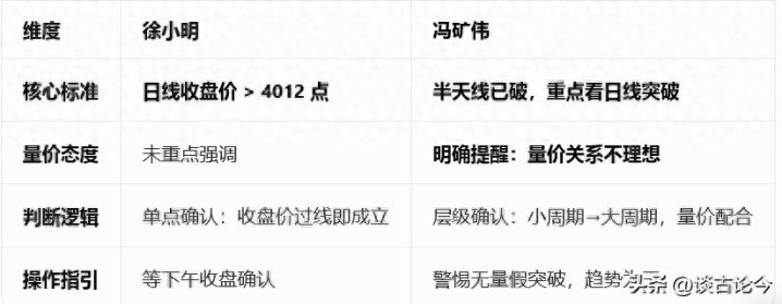 本日上昼,A股轰动上行,上证指数午间收于4010点,距离阛阓高度存眷的4012点纰谬趋势线仅一步之遥,多空博弈干预尖锐化。盘后,徐小明与冯矿伟两大时刻派大佬同步发声,不雅点高度聚焦却各有侧重,为下昼行情指明了中枢不雅察点。
