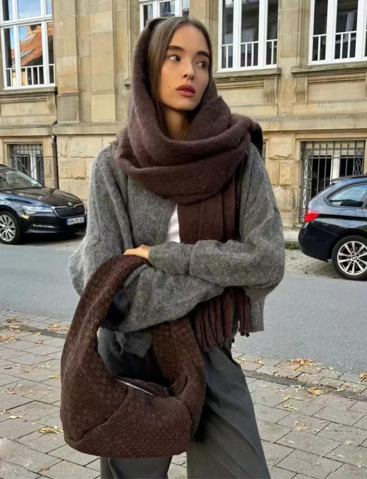 领巾是最佳的救赎。一条驼色羊绒领巾猖厥绕颈,既能挡风,也能化冰。
