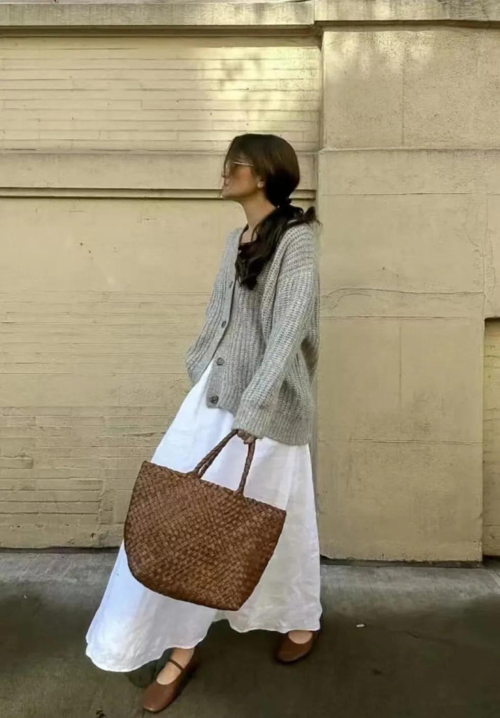 可系上一条棕褐色腰带,再拎一只同色手袋,通盘这个词东说念主忽然就活了。