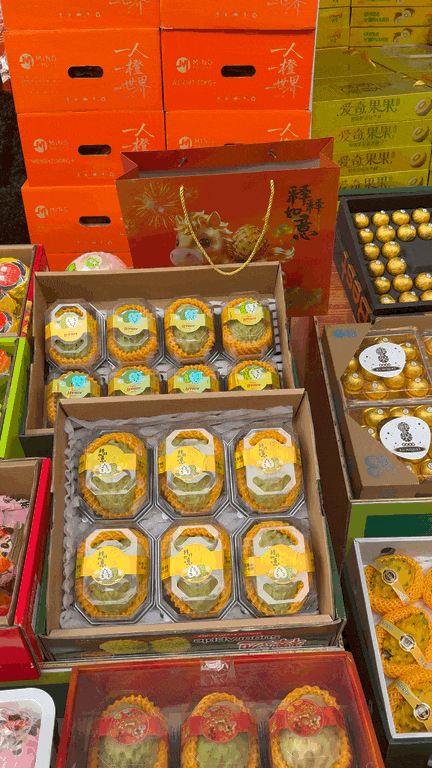 此外,柑橘类的耙耙柑、甘平,瓜类的青帝瓜、哈密瓜,按颗单独包装好的脆蜜金桔,都是今年顾客来选购的爆款产品。