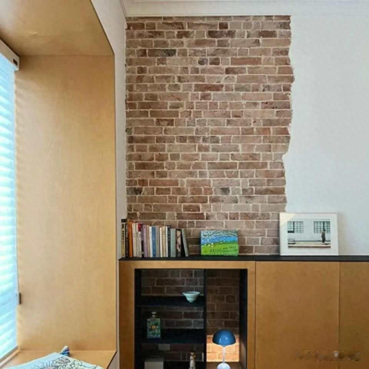 厨房里原来装在吊柜下方的沥水架,咫尺移到墙面高处,这不是跟风日本猜想打算,而是本体使用中发现台面被占太多场地,切菜时手没处放,往上移之后,水点不会溅到台面,弯腰的次数也减少了,神采和材料也作念了退换,红砖墙不是追求相沿,是把老房拆下来的旧砖切成小片,拼贴后再抹层腻子,这么神采当然还耐脏,门框边用了深蓝釉面砖,一块不到五十块钱,但一眼就能劝诱视野,比刷漆更安详耐用。