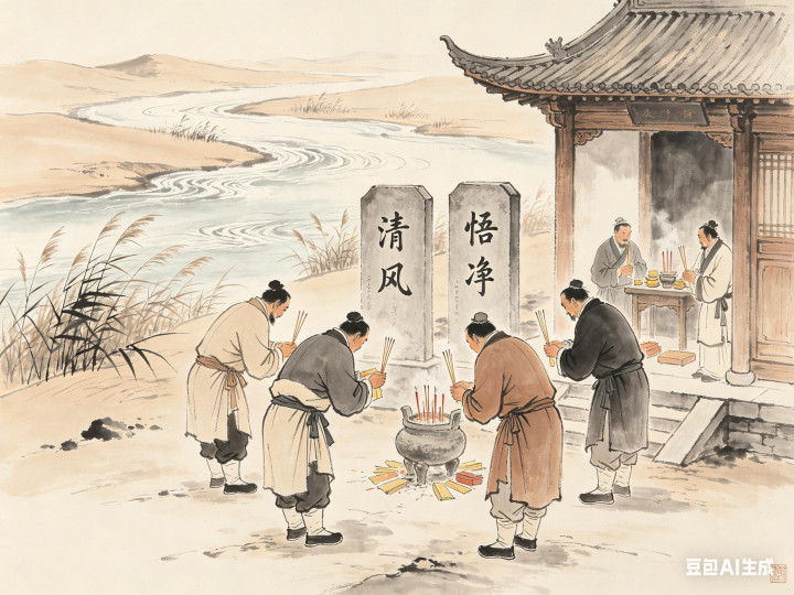 乡亲们为了顾忌他们,便将这条河更名为“流沙河”,还在河畔建了一座小庙,庙里不供神佛,只立了两块石碑,一块刻着“清风”,一块刻着“悟净”。