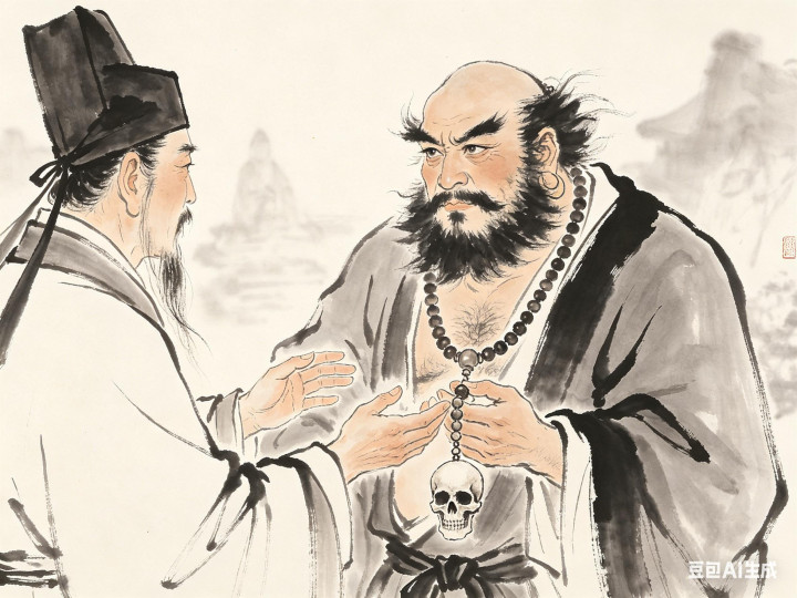 他顿了顿,看向沙梵衲,“你颈上那串骷髅念珠。”