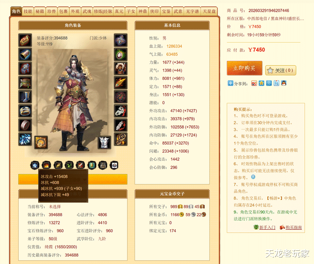 比赛下注 天龙八部: 触底价一进阶, 仅售7450! 但却是冰少林? 这打造看不懂