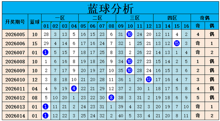 山哥双色球蓝球详尽分析: