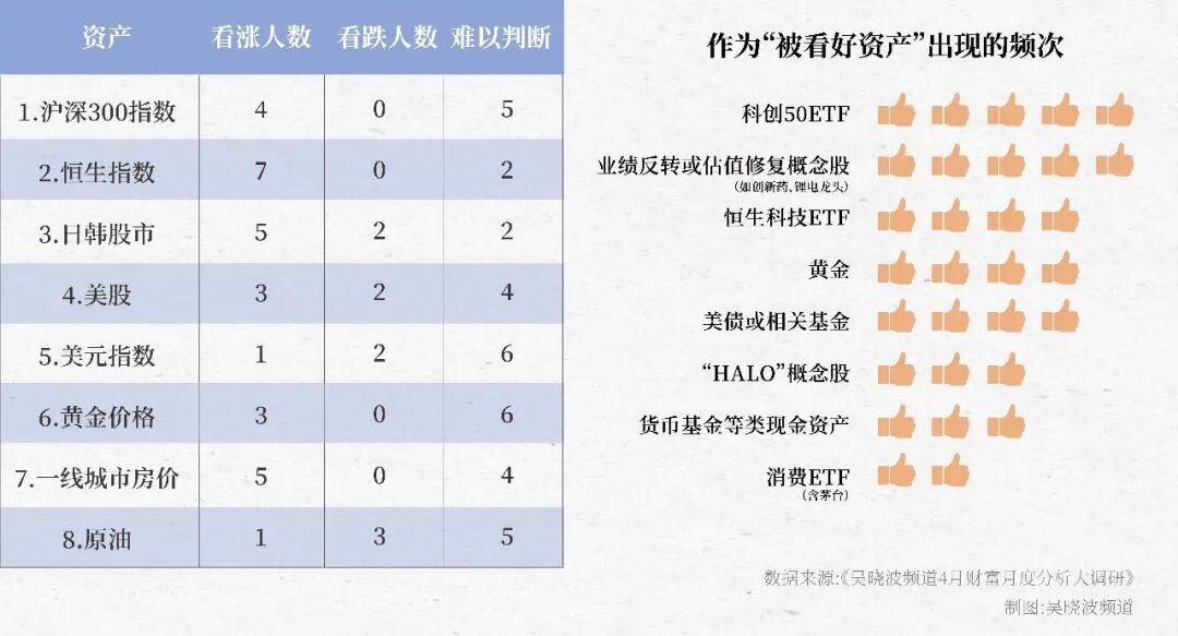 在评释中,咱们也邀请9位内行们在对恒生指数、沪深300,日韩股市、好意思股、好意思元指数、黄金、一线城市房产、原油八大资产进行涨跌预测,同期,对科创50ETF、功绩回转或估值开导倡导股、恒生科技ETF、消耗ETF、黄金、好意思债、HALO倡导股、货币基金八个投资标的进行确立淡薄。