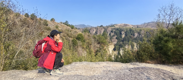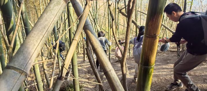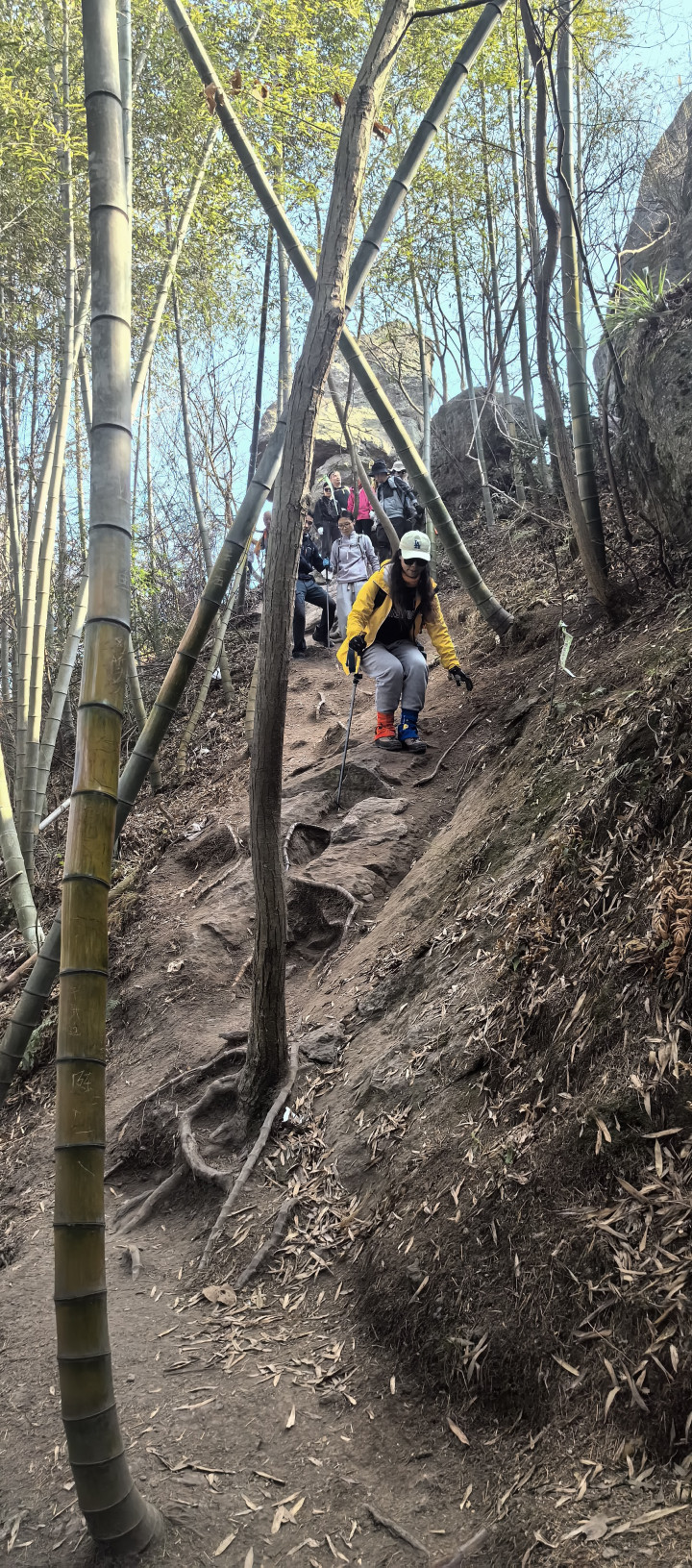 竹林深处,依然如斯。透过 竹子与竹子之间的罅隙,了了可见光秃站立的岩石。在这里你必须停留狭小。站在岩石边留个影,有一种唯吾独尊之感。放眼望向远方,水牛背的造型更了了了。远方的墟落成了一说念现象。 至高无上的设置感油关连词生。