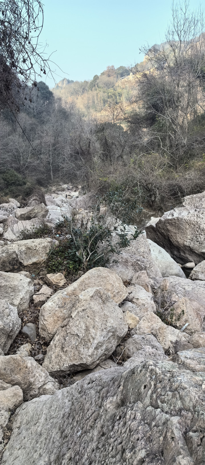 .穿越峡谷迎着溪边的小径一直上前。准确的说应该是石浪。从石狗窦到山脚,简直皆是大小不一,景观互异的石头酿成的石蜡。