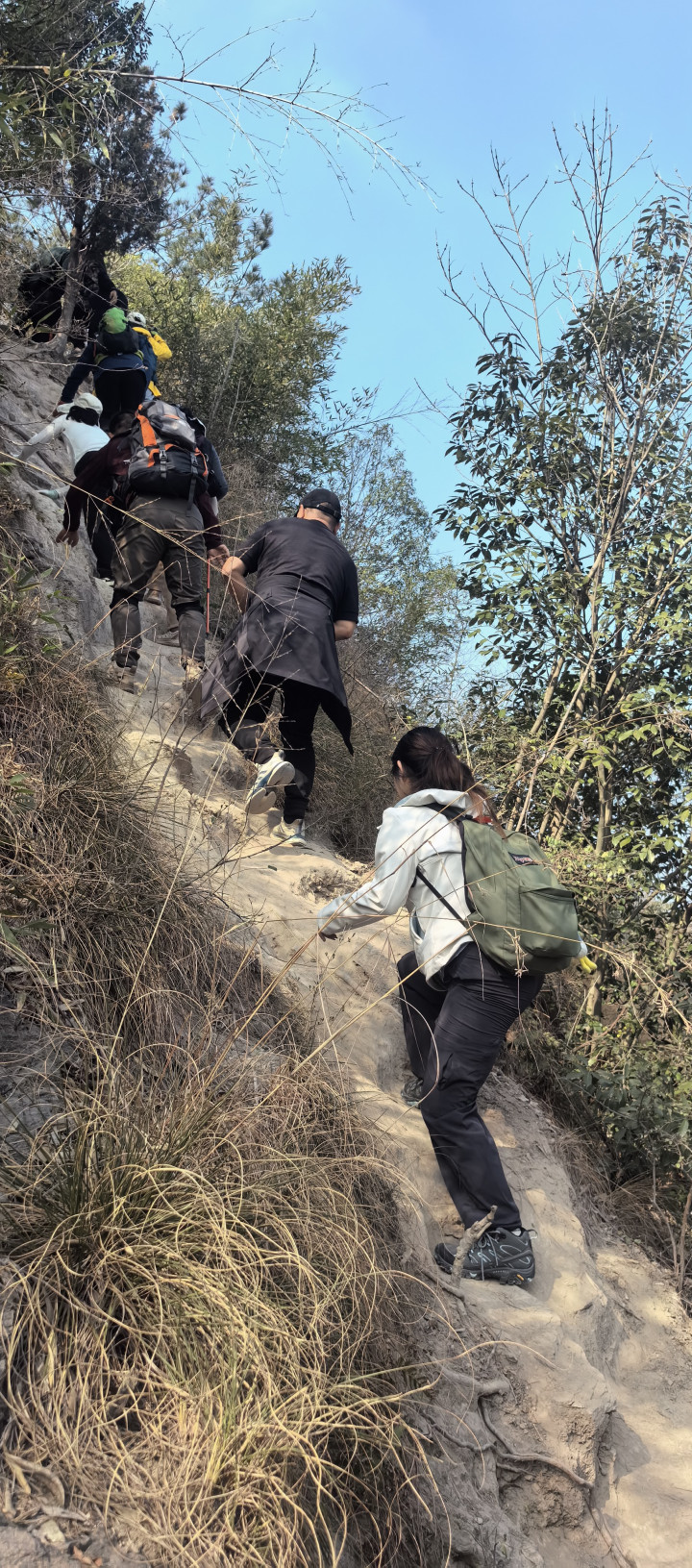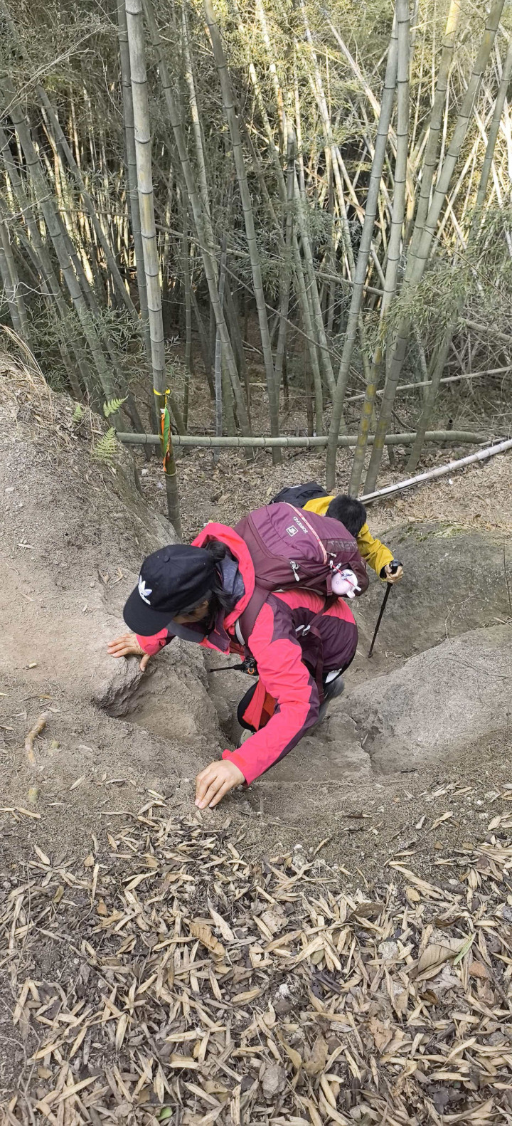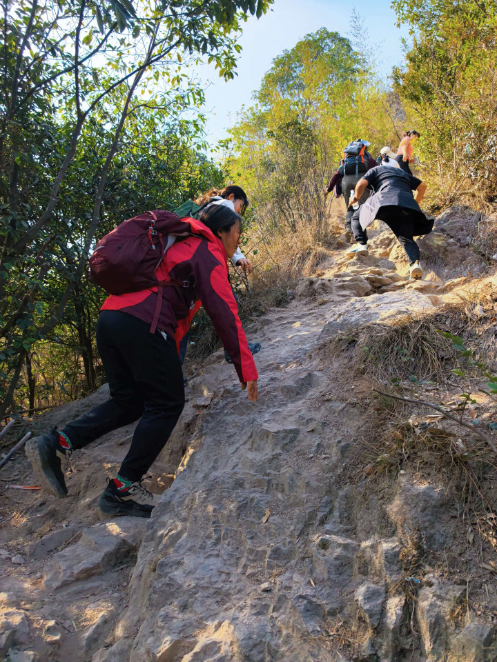 登山的路并不好走,好多地点皆需要行为并用才能朝上,从山脚到山顶,皆是如斯。