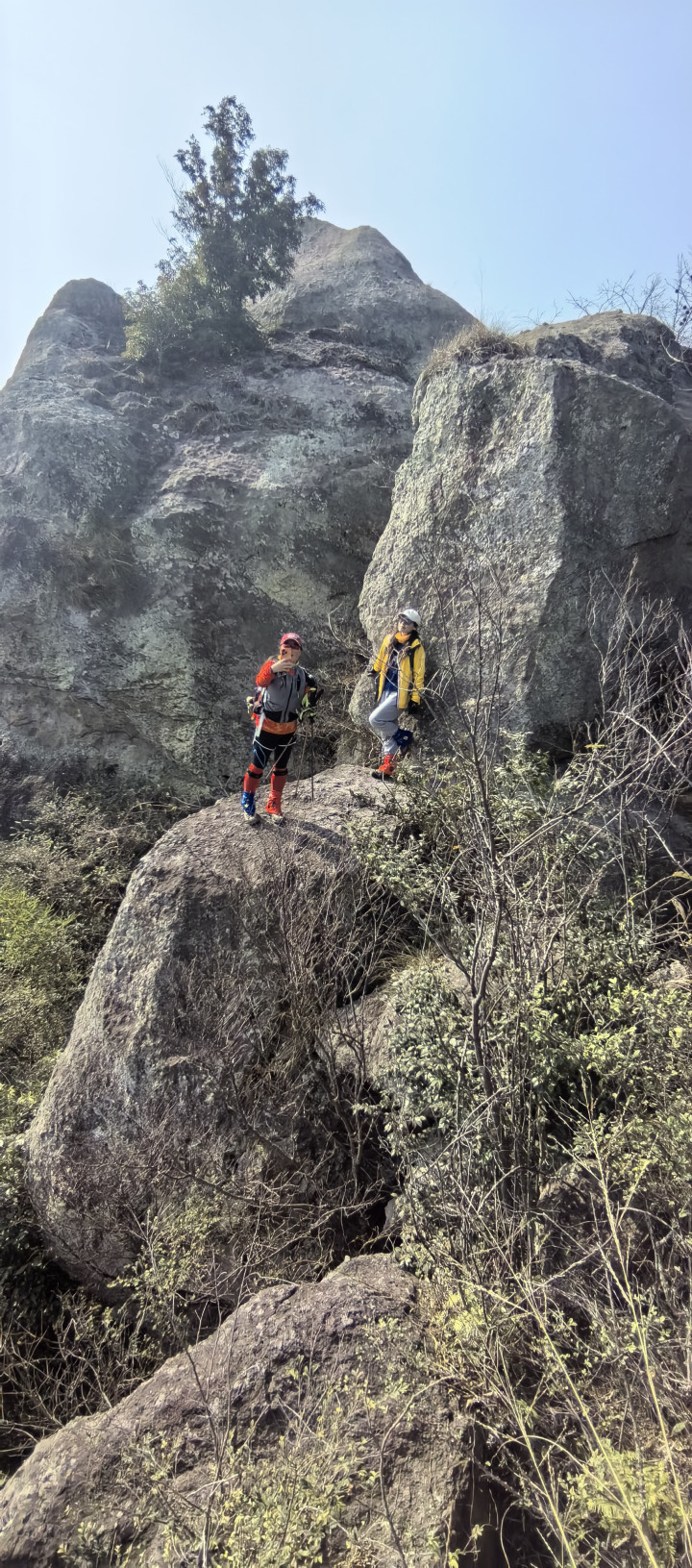 进程水牛背,再走一派森林,到达了今天徒步的最高处。这里的岩石 巍然站立,石峰俊朗、岩壑清幽。鬼形怪状之处 通常的体现了它的当然之好意思。大当然的鬼斧神工,在这里充分的体现出来。