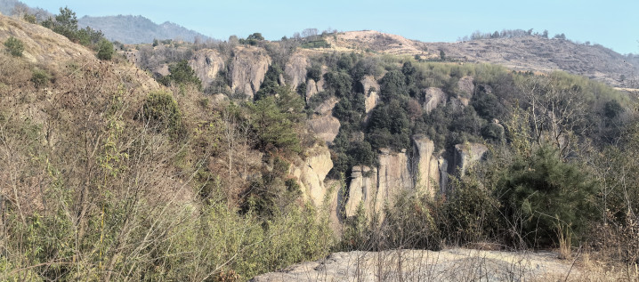 向两侧不雅看,一面是丁村 的全景,一面是连绵窜改的山脊。
