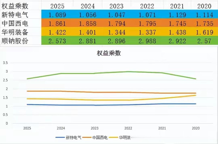 再看财务杠杆方针权力乘数,反应的是企业使用财务杠杆的高下,截止的杠杆能放大收益,但过高则会加多风险。2025年前三季度,四家公司的财务杠杆均稳中有升,契合行业高景气下的膨胀需求。顺钠股份的权力乘数以2.573倍名挨次一,杠杆使用成果最高,中国西电1.861倍位列第二,华明装备1.422倍名挨次三,新特电气1.089倍垫底,杠杆使用最为保守,这也让其收益放大的能力相对较弱。