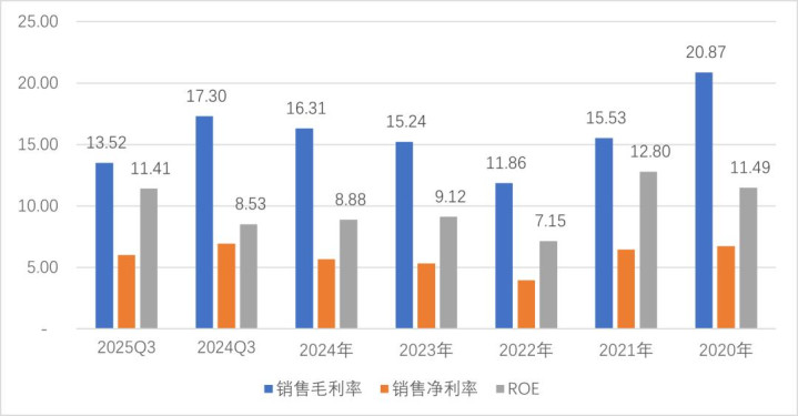 其一,并购后公司合座毛利率进一步下滑,2025年前三季度毛利率降至13.52%,同比下滑近4个百分点,这既与国内二片罐产能仍处于严重多余气象密切有关,也反应出此前消费复苏动能不足、下旅客户议价权偏强的周期特征;