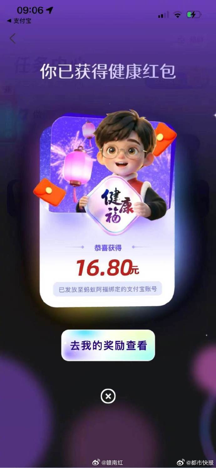比赛下注app 支付宝五福新增健康福,今早有东说念主抢到16.8元红包