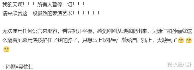 不少不雅众指摘:好瘆东说念主的演技,嗅觉孙俪和吴慷仁演爽了。