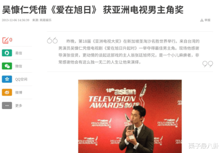 不外,吴慷仁天然拿下了东说念主生中的第一个视帝,但在大陆这边并莫得大开著名度。